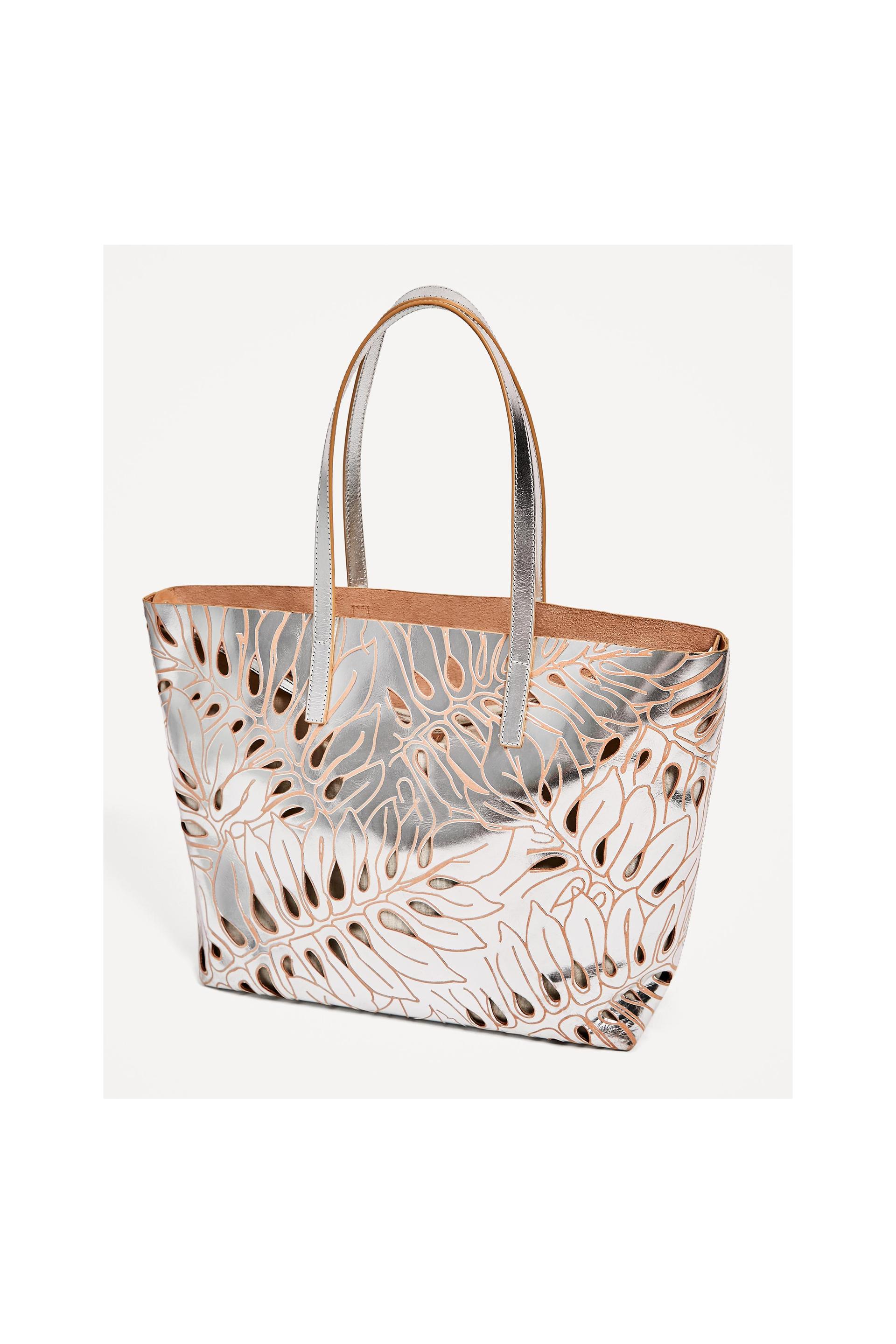 - Bolso shopper de piel troquelado color plateado de Zara (69,95€)